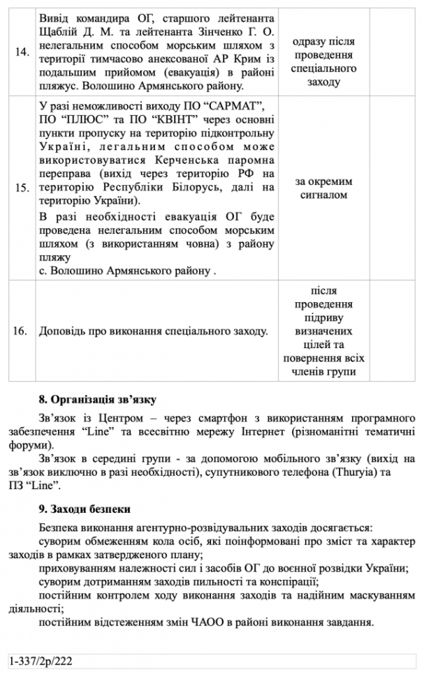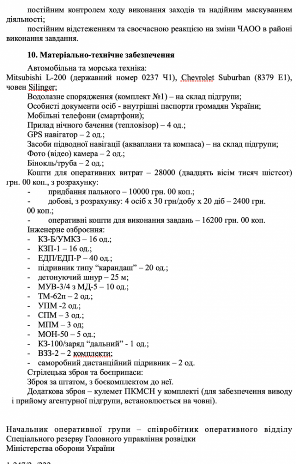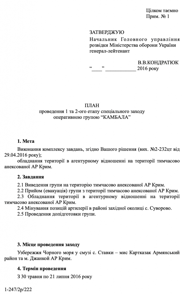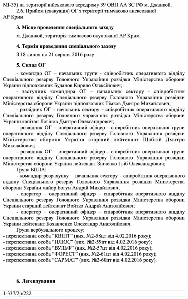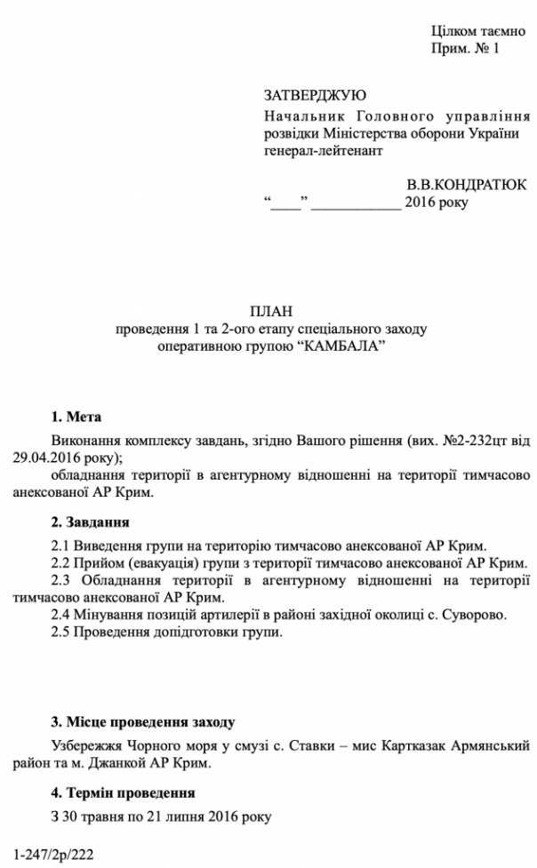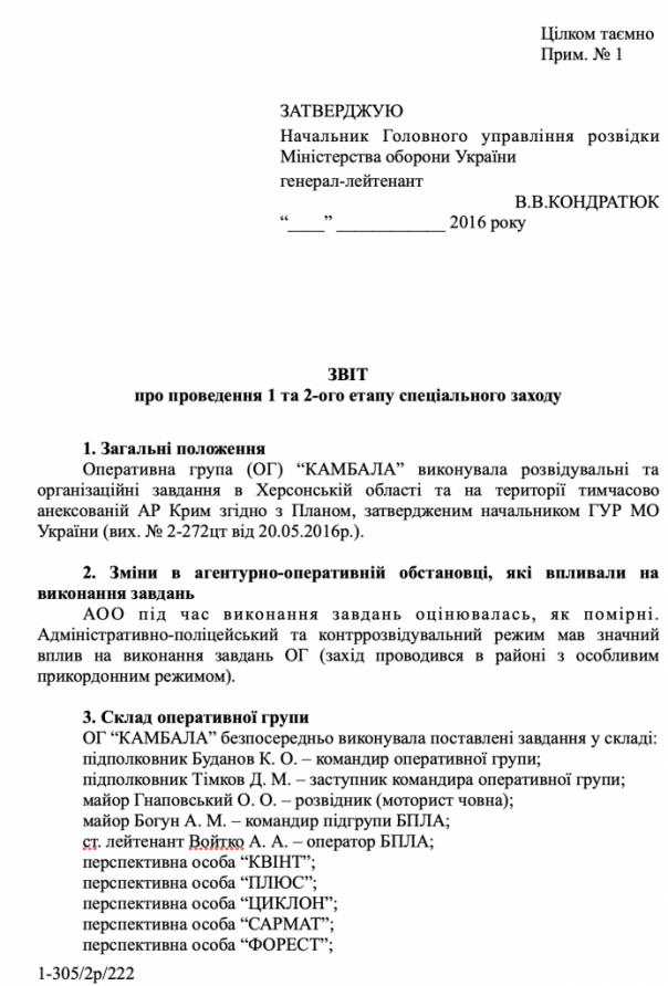 Основу группы составили действующие сотрудники военной разведки МОУ и боевики тербатов и воинских частей ВСУ с опытом боевых действий в Донбассе. А вскоре план операции был подписан тогдашним начальником Главного управления разведки генерал-лейтенантом Валерием Кондратюком (в 2020 г. за организацию диверсий и терактов на территории РФ и Донбасса он поощрен «миролюбивым» Зеленским назначением на должность главы Службы внешней разведки Украины — О.П.)