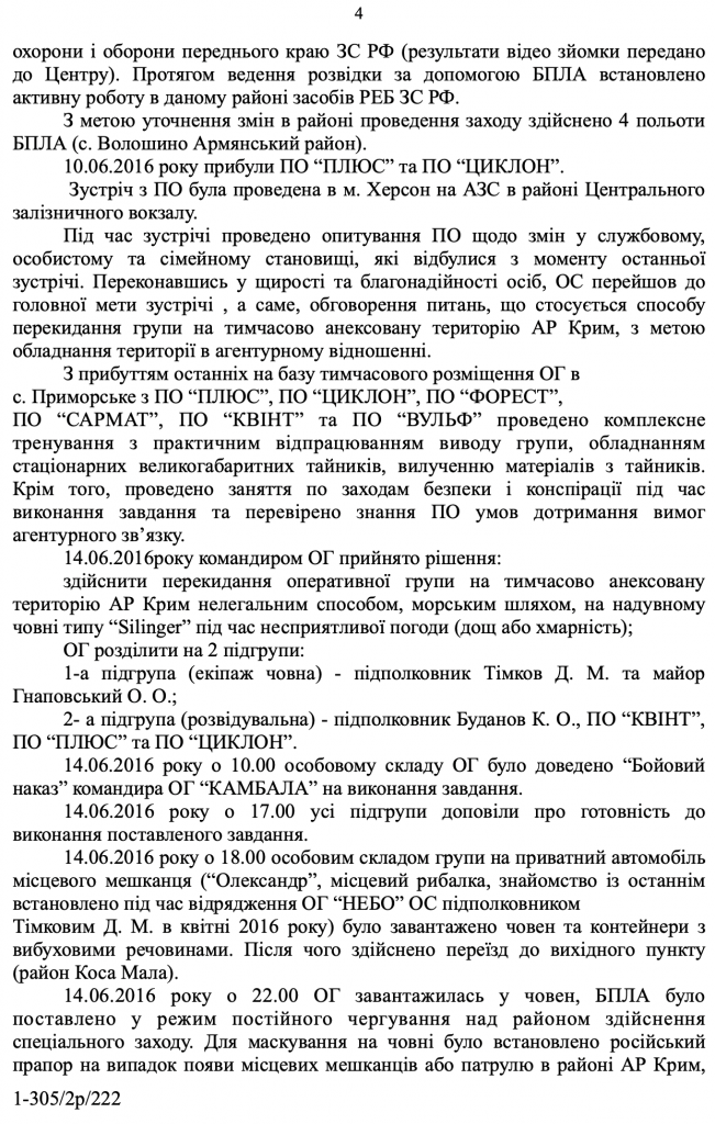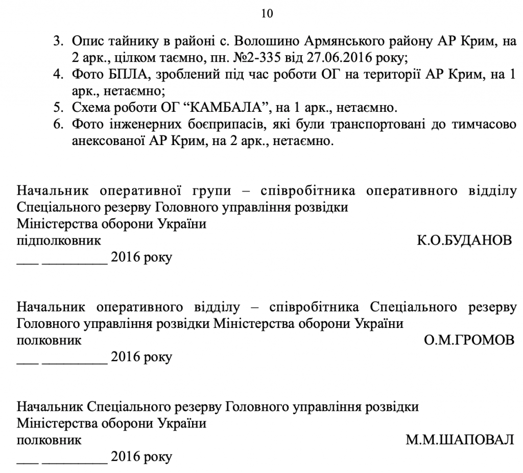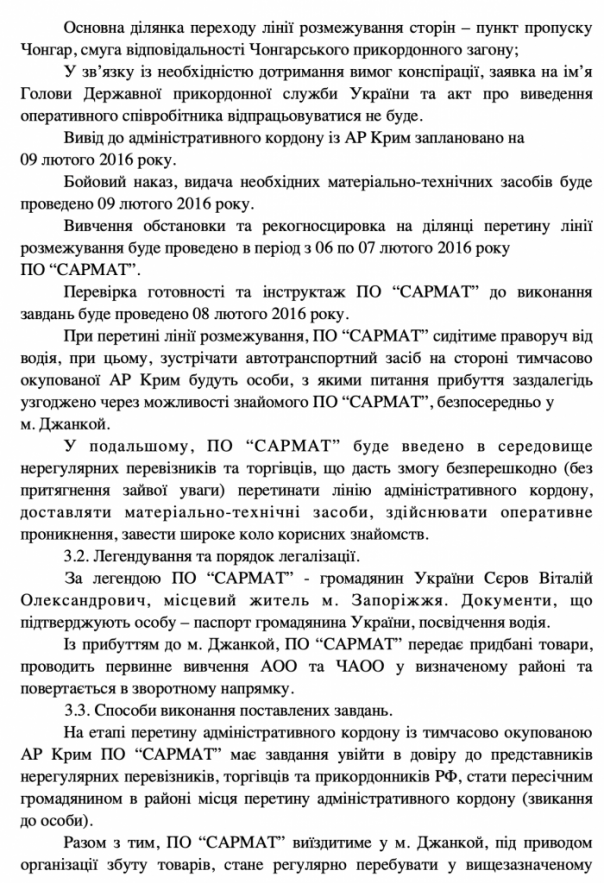 В мае 2016 года из претендентов были отобраны все диверсанты для проникновения в Крым. Каждая кандидатура проходила особую проверку на надежность. Но собеседования и тренинги, о которых упоминается в документах ГУР МОУ, были, скорее, обыденностью — главную проверку диверсанты прошли годом ранее в Донбассе. Для действий в Крыму отбирали лишь тех, кто повязан кровью, чтобы не «забуксовали» и «не дали заднюю». Таких в нынешней Украине тысячи и тысячи людей — озлобленных, загнанных в тупик нацизма, из которого оставляют лишь один выход — войну с Россией «разом і до кінця».