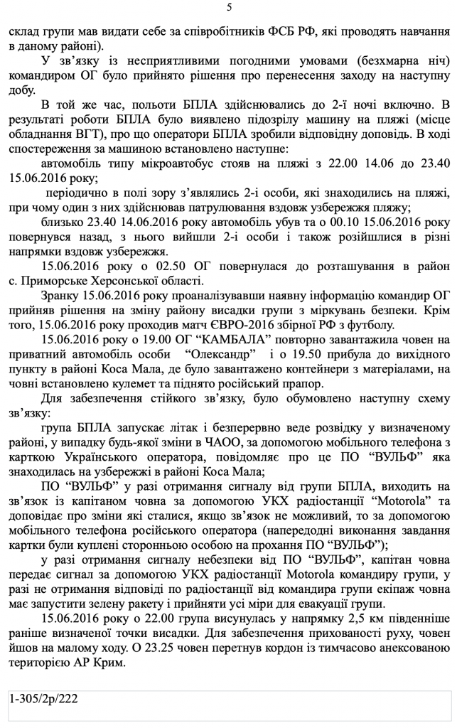 Перед высадкой в Крыму боевиков разместили на одной заброшенных херсонских баз под легендой группы БПЛА. Диверсанты так «убивали двух зайцев» сразу — для картинки пускали беспилотники и одновременно вели разведку крымского побережья, выявляя график и маршруты патрулей и дозоров российских пограничников, стремясь найти «окна» и бреши
