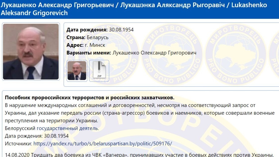 В так называем досье коллекционеры «врагов Украины» заявили, что Александр Лукашенко - «пособник пророссийских террористов и российских захватчиков».