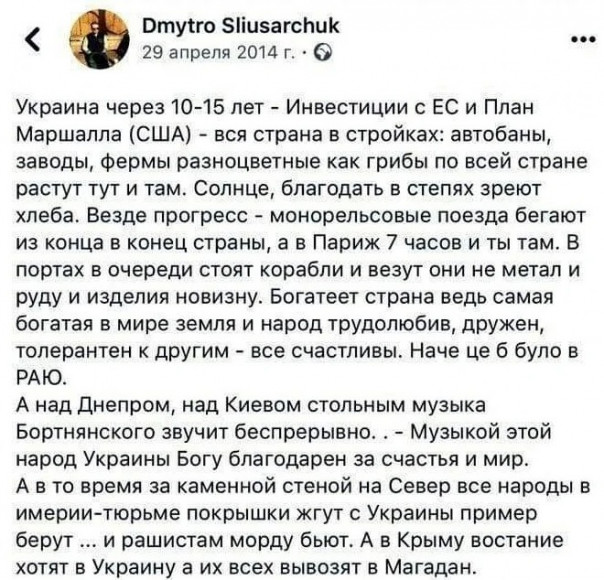 Все сказки — это фантазии предков, на чём-то основанные и передающиеся из поколения в поколение. Они все про прошлое. И только одна (по крайней мере для меня) оказалась пророческой, предсказавшей будущее. И вы несомненно угадаете чья именно это сказка о грядущем. Да, вы угадали — это украинское, мольфарское предсказание. Называется она «Злыдни». Кстати, она не чужда белорусам, которые так стремятся повторить её сюжет.