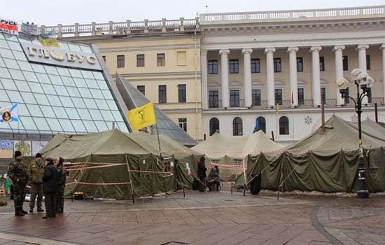 Часто можно встретить в сети рассказы о том, как сочувствующие киевляне приносят активистам еду. Однако у меня возникает простой вопрос: если перманентно на площади находится десять тысяч человек (не только Артемий Троицкий, но и многие другие говорят, что это минимум), то еды должно приноситься ежедневно не меньше пятнадцати тонн — оборот средних размеров супермаркета. И то протестующих будут кормить не плотно.