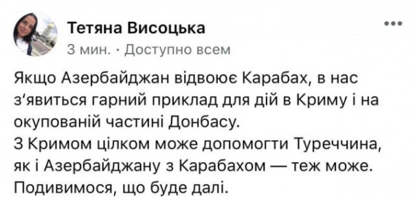 Что примечательно, еще не успели предать земле эти 26 жертв несуществующей, но провоцируемой Западом, войны с Россией, как у упоротых её сторонников из числа украинских аборигенов в стеклянных бусах новый повод для радости – Нагорный Карабах. Там, по их мнению, Азербайджан и Турция должны надрать задницы Армении и соответственно – России. И планы у аборигенов далеко идущие – вплоть до того момента, когда Эрдоган возвращает им Крым, а в это время они опять наслаждаются «Оболонью» на руинах Кремля.