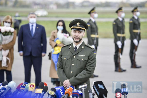 Его встречали с «почестями» на аэродроме Нацгвардии Украины.