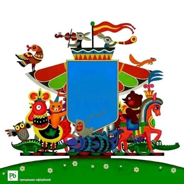 Вообще, его наличие предусмотрено Конституцией страны. И вот уже 30 лет они его никак не могут согласовать. Малый герб есть - это всем известный тризуб на щите - он же Рарог, он же сокол Рюрика. Ну то есть, взяли готовый. А сделать свой пока не выходит. Теперь вот очередная - уже пятая - попытка. Прежние четыре депутаты Верховной Рады не утвердили. Теперь конкурс снова провели, победителя определили. Но не факт, что нардепы примут и этот вариант. Слишком уж ржачный.
