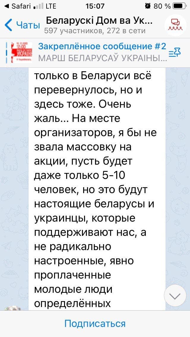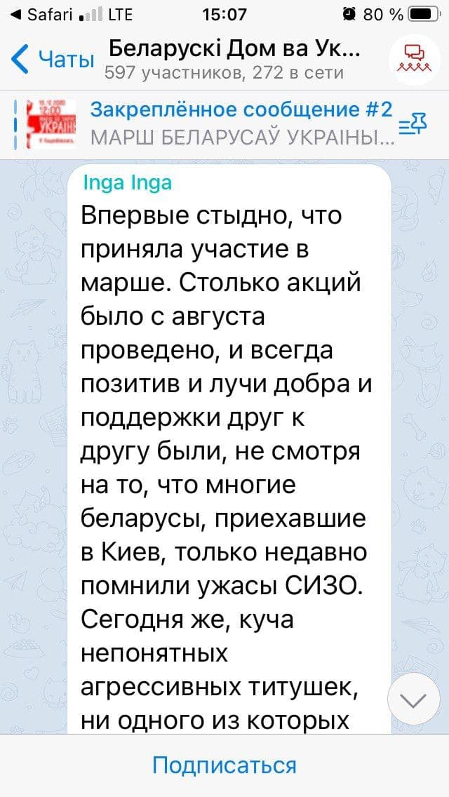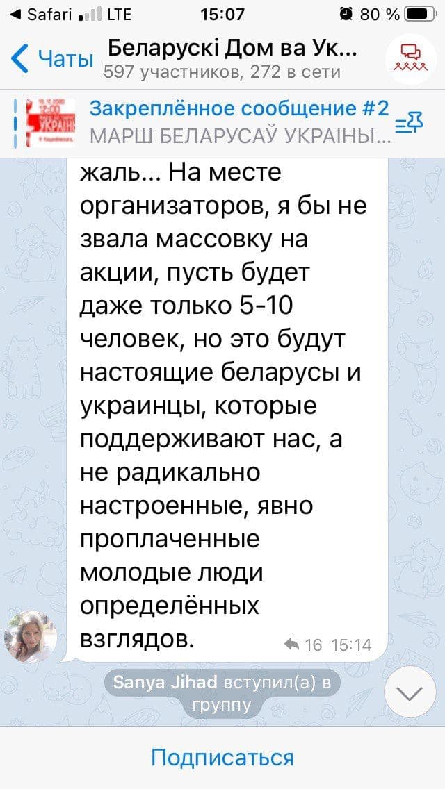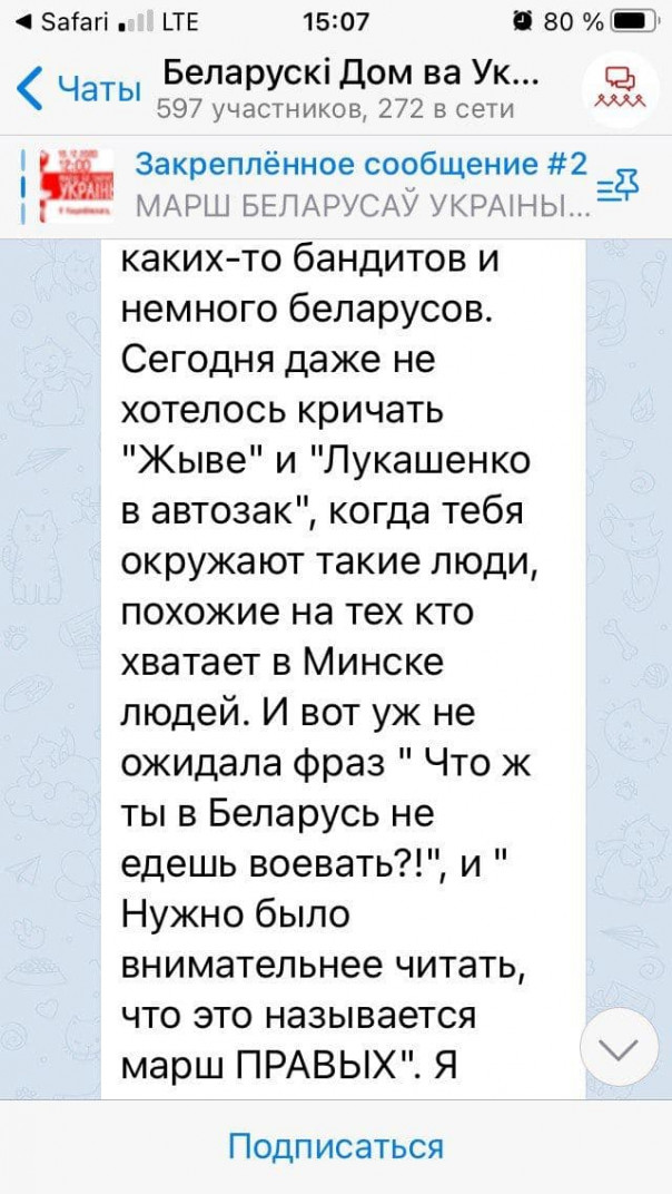 Причем особое отношение к ситуации в Беларуси со стороны ОУН стало проявляться после того, как 2 октября 2020 года активисты движения «Разам» Е. Толстая и О. Овчинников участвовали во встрече киевского отделения данной политической организации.