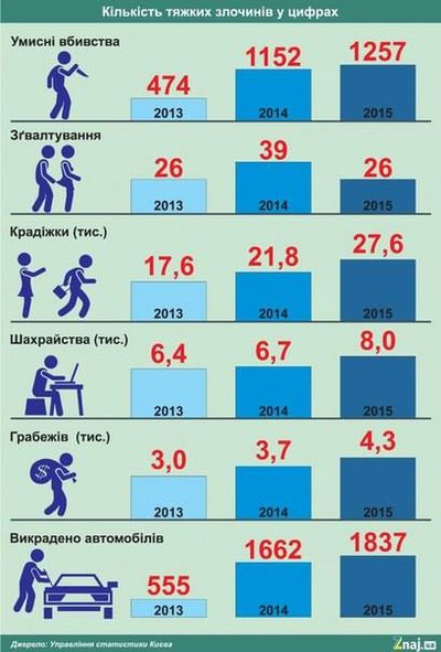 Количества тяжких преступлений только по Киеву