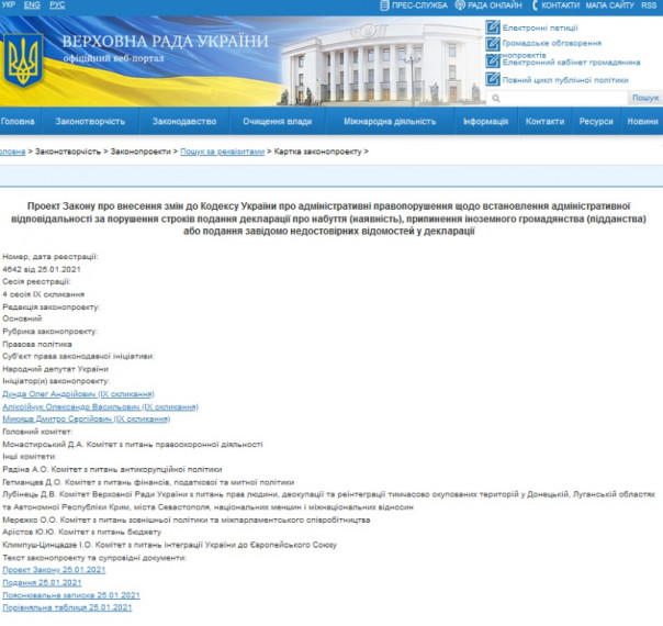В другом законопроекте №4640 предлагается внедрить административную и уголовную ответственность за сокрытие украинцами гражданства «страны-агрессора» — Российской Федерации, а также предусматривает механизм лишения таких украинцев права голоса на выборах и возможности занимать государственные должности или баллотирования в депутаты.