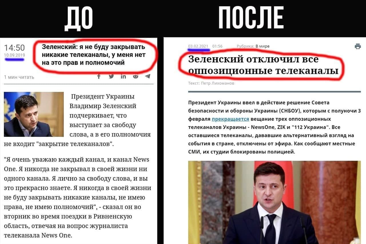 При Порошенко от народа закрыли социальные сети Интернета. При Зеленском социальные сети остались закрытыми, но вдобавок к этому начали убивать остатки оставшейся демократии. Президент Зеля 2-го февраля 2021 г. единолично закрыл три оппозиционных телеканала: «112», «ЗИК» и «Newsone». При этом он грозится закрыть еще и Шария со всей его ютубовской свитой. Так что тоталитарный режим в Украине неожиданно для всех продолжает ужесточаться еще до невиданных в мире стандартов!