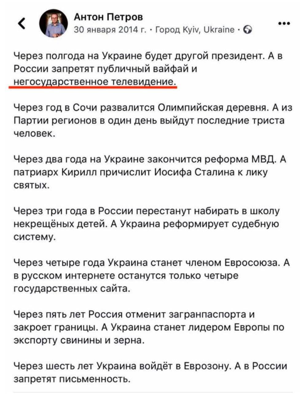 Эти оппозиционные каналы были одни-единственные, которые хоть какой-то проливали белый информационный свет на то, что происходит в Донбассе. Рассказывали, что на самом деле происходит в экономическо-хозяйственной деятельности страны. В какой эти недолугие соросята ввергают хаос, смерть, войну, раскол, нацизм, уничтожение собственной промышленности и отдаче за бесценок земель Украины. И многое другое страшное, что они приносят обществу.