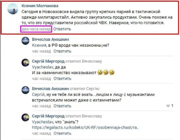 Не прошло и 40 минут с момента публикации моего крайнего поста, о том, что укры готовят вбросы о вводе в Донбасс российских ЧВК и прочих зелёных человечков, как укры начали отрабатывать этот темник и разгонять по своим сетям вброс на диалог.юа за 8 марта: