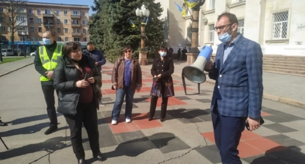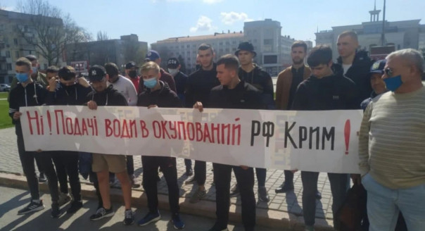 В Херсоне возле здания облгосадминистрации группа националистов провела протест против возобновления подачи воды по Северо-Крымскому каналу.