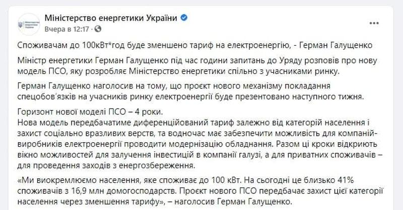 Смотрите хитренькие какие. Министр энергетики пообещал... снижение тарифов на электроэнергию. Правда, не для всех, а только для тех, кто потребляет менее 100 киловатт-часов.