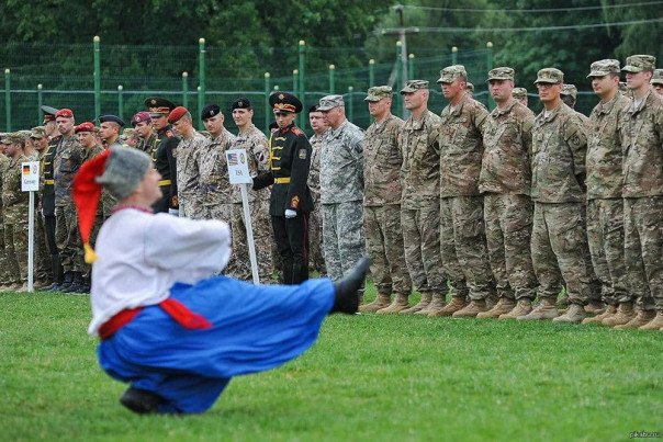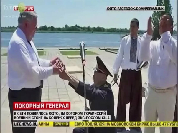 Упадок украинского вооружения символично продемонстрировал солдат из почетного караула на встрече Украины и Грузии)