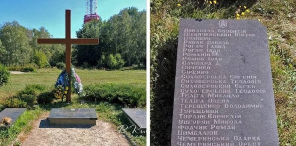 Этот мемориальный крест и гранитные плиты установлены в Бабьем Яру - на них имена "расстрелянных немцами" членов ОУН. Первым идет Созонтий Пиндуляк.