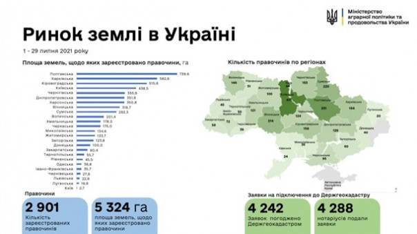 За первый месяц работы рынка общая площадь проданных участков составила 5324 га, а сумма сделок – 210 млн гривен.