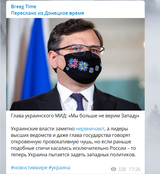 В Донецкой народной республике (ДНР) высмеяли последние откровения от главы МИД Украины Дмитрия Кулебы, которые он произвёл в интервью изданию The Indepedent.