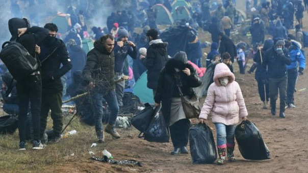 В понедельник несколько тысяч находящихся в Белоруссии мигрантов, в том числе женщины и дети, выдвинулись в сторону польской границы. Оказавшись перед заграждением, они попытались объяснить, что покинули свои страны из-за опасности для жизни.