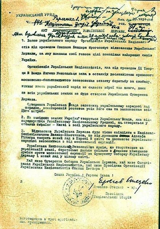 «Восстановленная Украинская держава будет тесто сотрудничать с национал-социалистической Велико-Германией, которая под предводительством Адольфа Гитлера творит новый порядок в Европе».