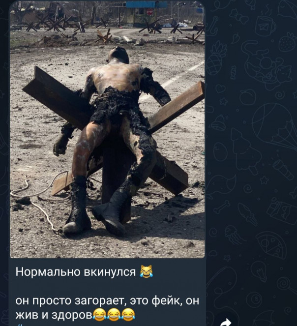 Фото с замученным националистами военным сопровождаются издевательскими подписями, например, «погода кайф, можно позагорать».