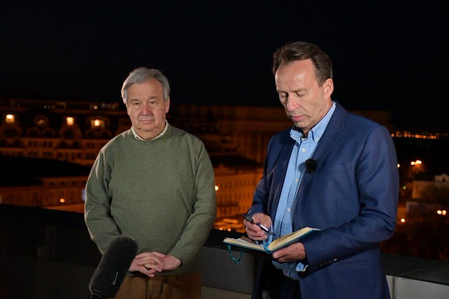 «Генеральный секретарь ООН сказал мне, что он шокирован тем, что Россия нанесла ракетный удар по Киеву, пока он находится в городе для переговоров с президентом Зеленским. Украина называет это «отвратительным актом варварства» и «открыткой из Москвы»».