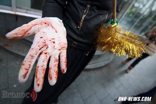 Во Львове активисты Экономического бойкота окропили святой водой отделения «Сбербанка России», чтобы злые силы покинули Украину.