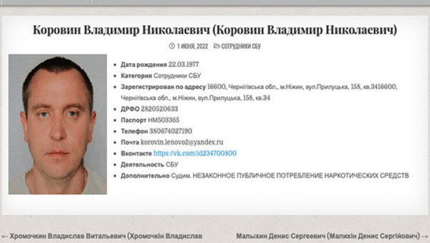О другом сотруднике СБУ, Владимире Коровине сказано: «Судим. Незаконное публичное потребление наркотических веществ». Впрочем, еще раз отметим, что опубликованные данные не подтверждены.