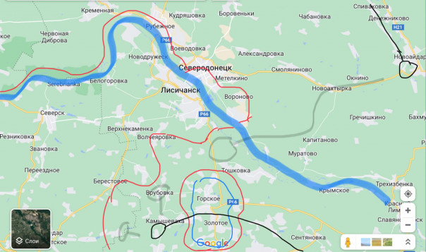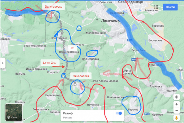 У Армии РФ очень выгодная позиция. Идёт зачистка Северодонецка, угроза переправы в районе Белогоровки и угроза взлома линии обороны по линии Берестовое-​Волчеяровка-Белая гора. При том, что линии снабжения ВСУ в Лисичанске находятся под огневым контролем.