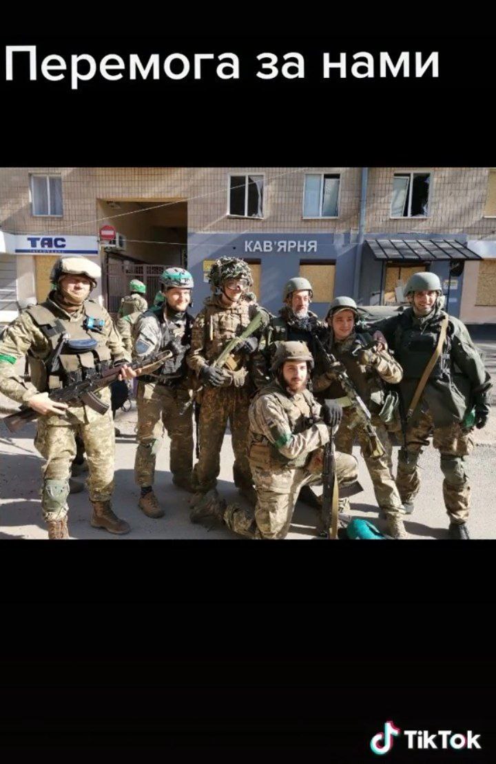 Примечательно, что место нанесенного удара послужило украинским военнослужащим фотосессией. Здание легко идентифицируется по характерным магазинам и арке на фоне.