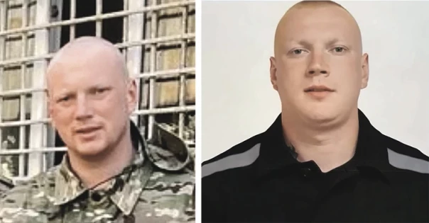 на фото слева он в военной форме, а справа - он же ранее в тюремной робе.