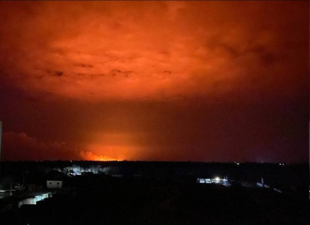 На данных кадрах отчетливо слышны вторичные детонации на складе боеприпасов после прилёта дрона-камикадзе.