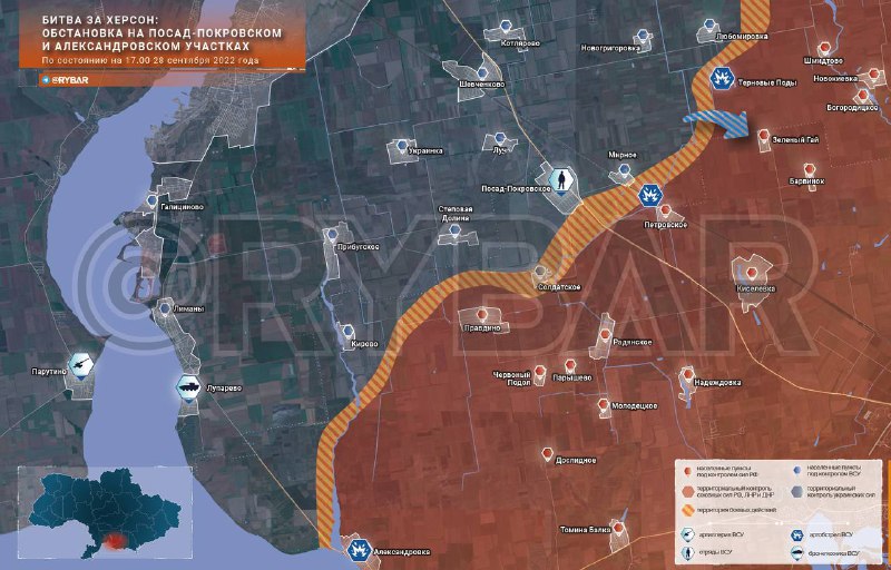 Битва за Херсон: обстановка на Посад-Покровском и Александровском участках по состоянию на 17.00 28 сентября года