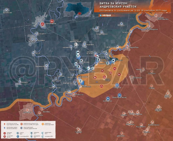 Битва за Херсон: обстановка на Андреевском участке по состоянию на 16.00 28 сентября 2022 года