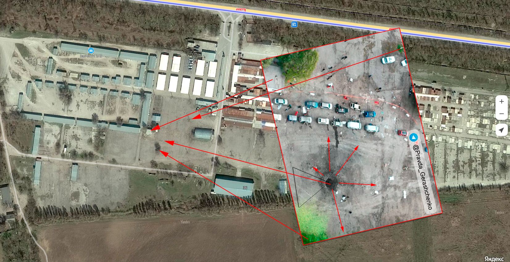 Киевские оккупанты сразу во всём обвинили российские войска и мы честно ждали доказательств. Если это была ракета, то путчисты должны были трясти её обломками. Но не было ракеты. Фотографии с места происшествия показывали взрыв характерный для артиллерийского снаряда, но не ракеты. Сначала появилась фотография воронки от взрыва, а потом известный деятель путчистов Антон Геращенко опубликовал фотографию места происшествия сверху, с квадрокоптера. Сразу стало всё понятно.