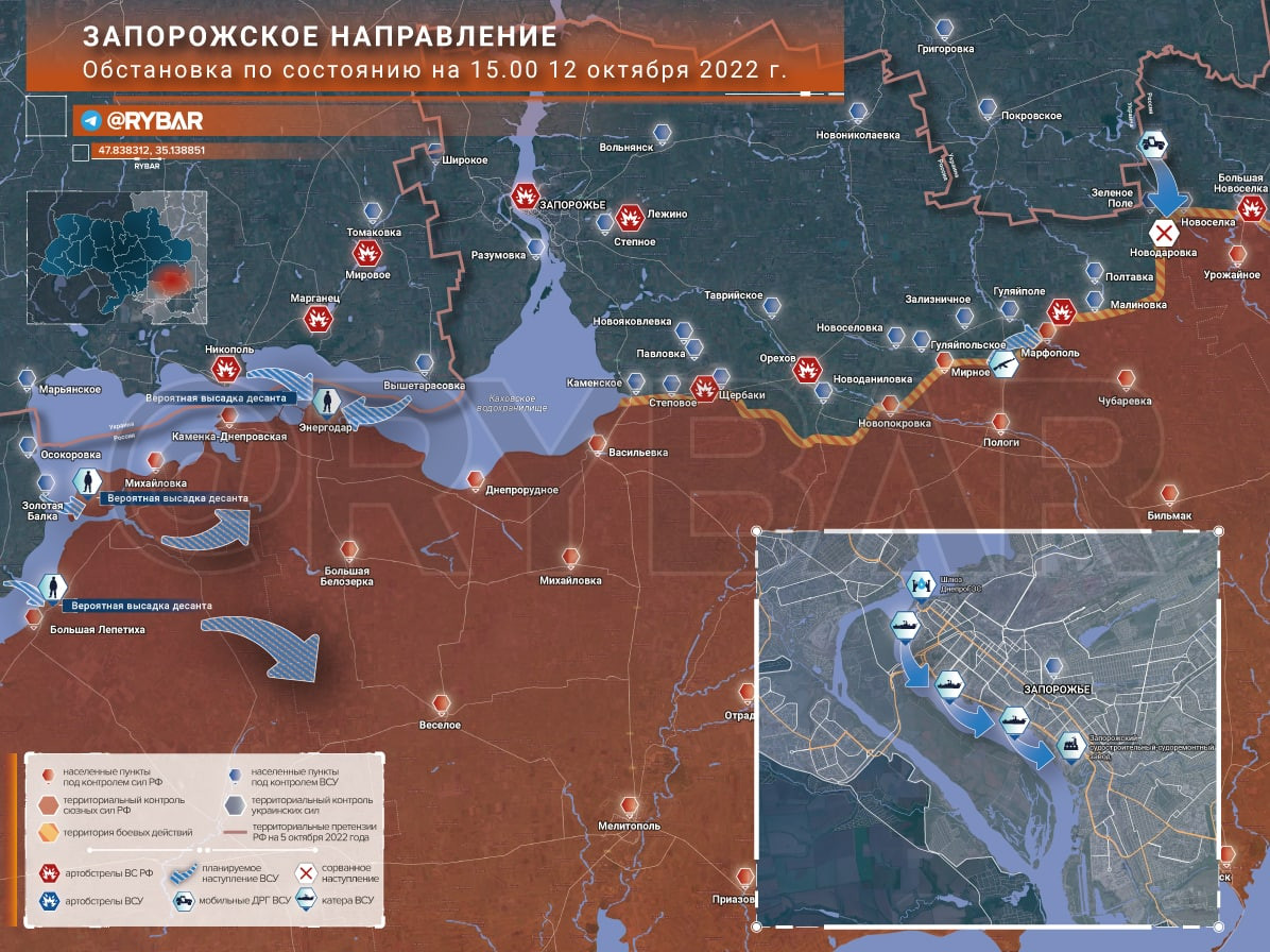 Обстановка на Запорожском направлении по состоянию на 15.00 12 октября 2022 года