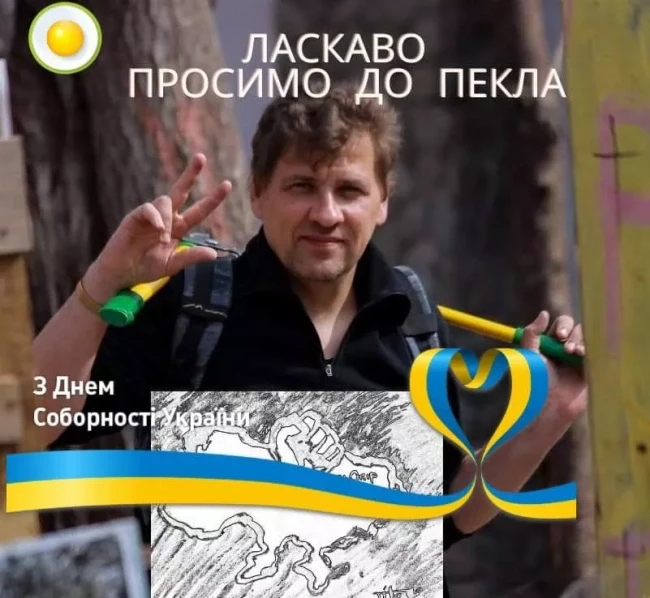 «Маркерам русского мира не место в украинском городе. Мы считаем, что такой вид [с мешком на голове и удавкой] значительно лучше. Екатерина уничтожила остатки украинской государственности, уничтожила Запорожскую Сечь, закрепостила крестьян и проводила политику государственного антисемитизма.