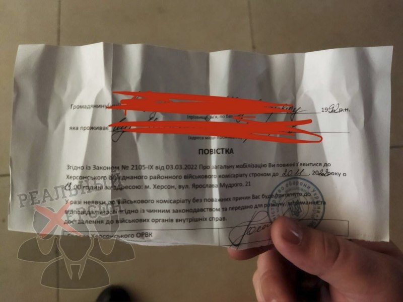 Между тем, в Херсоне проходит мобилизация всех граждан призывного возраста, в том числе, студентов. Под мобилизационный каток попадают и «ждуны», несколько месяцев терпеливо прятавшие украинские флаги в ожидании «освободителей». По информации, поступающей из города, попытки бегства многих мужчин жёстко пресекаются: местные жители сообщают, что избитых беглецов, в том числе, пожилого возраста, доставляют на пункты сбора призывников, а некоторых сотрудники СБУ и вовсе увозят в неизвестном направлении. В общем, повестки летят, как осенние листья и снежные комья...