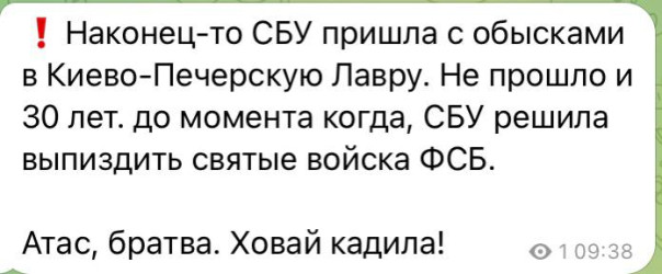 Также СБУ проверяет лиц на территории Лавры на предмет "причастности к противоправной деятельности во вред государственному суверенитету Украины".
