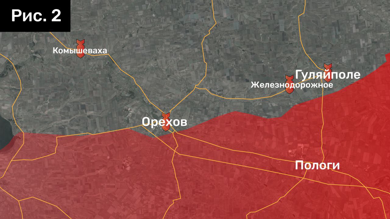 На запорожском направлении Вооружённые Силы РФ вели огонь по скоплениям украинских войск в Комышевахе, Орехове, Железнодорожном и Гуляйполе. (Рис. 2)