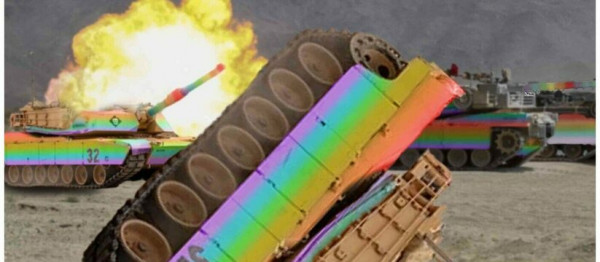 Американские "Абрамсы" с радужной расцветкой ЛГБТ были встречены овациями в Киеве. Но стоило им произвести боевое развертывание, как ВС РФ уничтожили "расписных не таких" буквально за несколько секунд, сообщает автор на сатирическом сайте Babylon Bee.