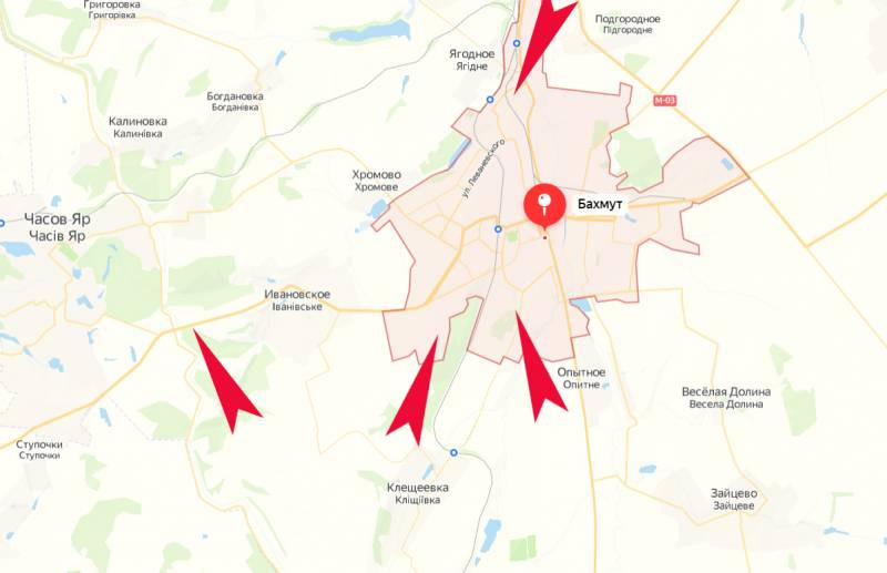 На данный момент военкоры пишут, что российские отряды проводят зачистку на севере Артёмовска. Другие штурмовые группы продвигаются к юго-западу от города – в направлении Часова Яра, который относительно Артёмовска (Бахмута) находится на возвышенности. Эта географическая особенность в определённой степени затрудняет боевую работу по полному окружению бахмутского гарнизона ВСУ.