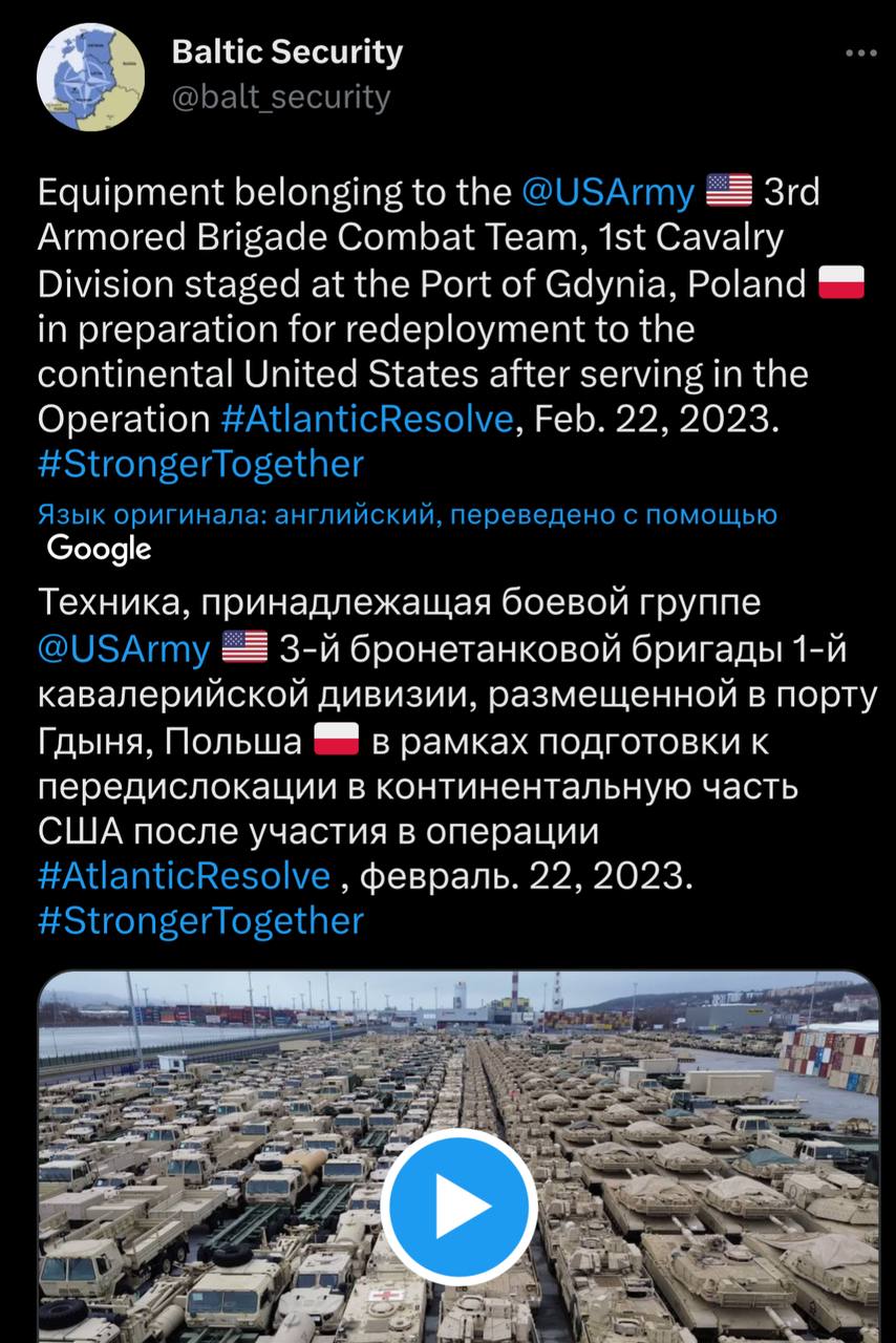 На самом деле это техника, которая ВОЗВРАЩАЕТСЯ ОБРАТНО В США в рамках операции «Атлантик Резолв».