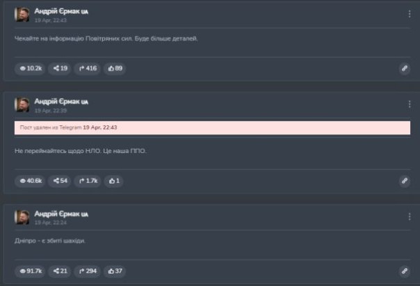 После того, как Ермак снес свой «успокаивающий» пост, который подняли на смех сами же украинцы, советник главы офиса президента Украины многозначительно призвал граждан «ждать официальной информации от Воздушных сил».