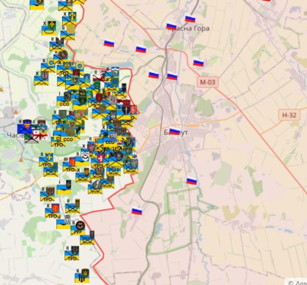 Чтобы охватить Артемовск с севера, противник должен как минимум взять Сакко и Ванцетти, Дубово-Васильевку, Берховку, Ягодное, Красную Гору - вот это и можно называть - охват Артемовска с севера. На текущий момент, противник этого оказался не в состоянии осуществить.