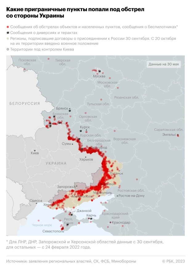 Всего за сутки по территории округа было зафиксировано 155 попаданий, больше всего пришлось на само Шебекино (48), на Таволжанку — 42. 39 ударов было в селе Муром. В селе Графовка, которое обстреляли 29 мая, погиб мужчина — снаряд прилетел во двор его дома.