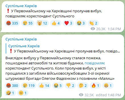 На самом деле: Днем УкрСМИ сообщили, что 13:35 был прилет г.Первомайский. Воздушная тревога объявлена не была. Один из первых, кто оповестил население Харьковской области о прилете был пропагандистский медиа ресурс "Суспільне Харків". Сразу с места событий появились кучу фото и видео доказательств прилета!