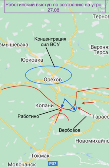 «Командование ВСУ, убедившись, что достичь стратегического успеха в летнем наступлении не получится, теперь сосредоточилось на более скромной задаче — прорыву к Токмаку. Такой прорыв, по мнению Сырского, позволит, не только парализовать функционирование этого крупного логистического центра и осложнить снабжение всего Запорожского направления, но с этих рубежей станет так же возможно устойчиво накрывать артиллерией и РСЗО сухопутную трассу в Крым в районе Мелитополя, а главное, это создаст опасное вклинение в русскую оборону, которое можно будет использовать в будущем наступлении.