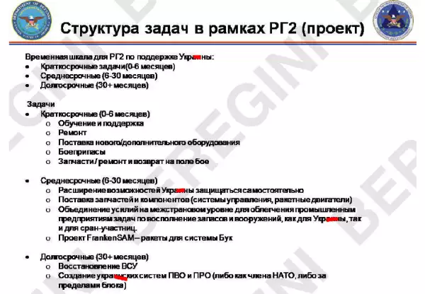 Совсем недавно, наши девушки- хакеры из Beregini, достали из военного ведомства противника крайне любопытные документы, под названием UKR Defense Contact Group (Контактная группа по обороне "У). Это долгосрочный план, который Пентагон привёз на последнее заседание в Рамштайн в конце апреля (за полтора месяца до контр-ия). Для нас с вами и наших ведомств там есть крайне важная информация.