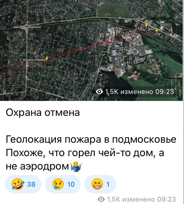 Украинцы «подожгли» военный аэродром и военную часть под Москвой с помощью Телеграма