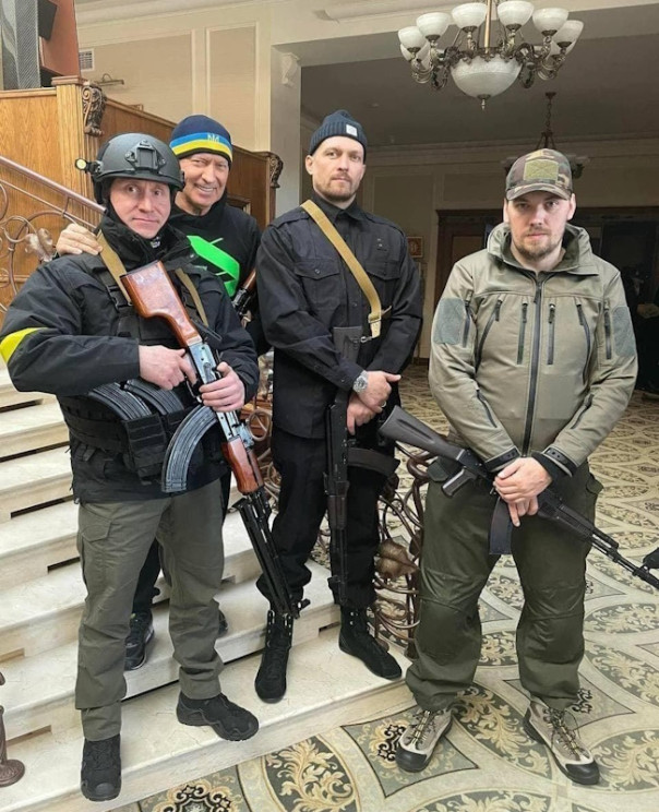 После начала спецоперации ВС РФ по демилитаризации и денацификации Украины Усик объявил о том, что вступает в киевскую территориальную оборону. Видимо, решил, что Украине лучше быть нацифицированной, чем денацифицированной. В апреле 2022 г. появились его картинные фото с автоматом. Но уже через некоторое он время сообщил о выезде за границу – для продолжения спортивной карьеры.